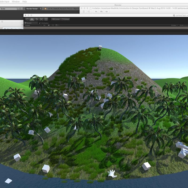 The start of Project Map, my attempt at cloning Black & White, the god game by Lionhead Studios. Day one was terrain generation with palm trees on a tropical island. Day two was getting the camera controls and C# scripting working in Unity3D. I never finished it (obviously), but learning 3D world-building and game physics through trying to recreate something I loved was the best kind of education. The terrain generation skills ended up being useful for the Medikidz game environments.