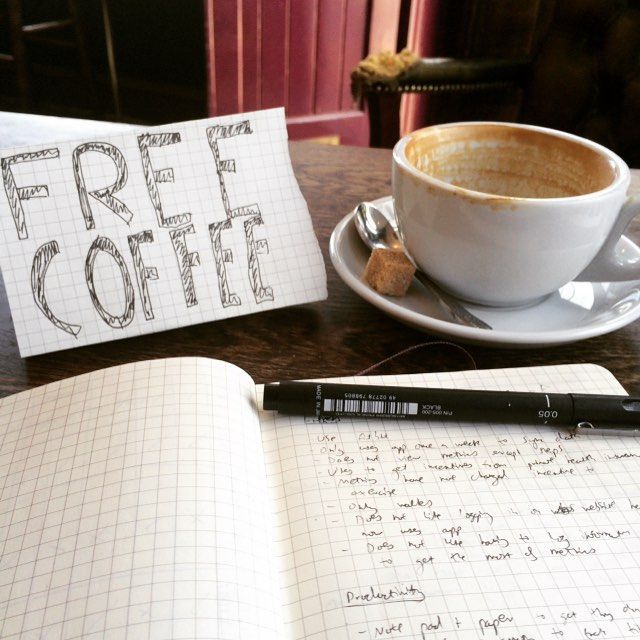 FREE COFFEE for anyone who comes to the Hawkhurst Vault today and speaks to me for 5 minutes about lifestyle. Hand-drawn sign, graph paper notebook, and a proper coffee. This was my approach to user interviews for an app idea I had: sit in a Shoreditch café, bribe strangers with caffeine, and write down everything they said. Scrappy, but I learnt more in that afternoon than I would have from a month of surveys.