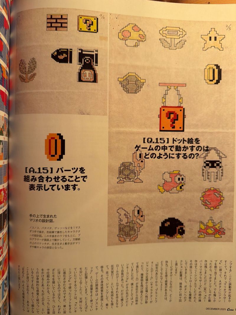 Really cool expose from the Japanese Casa BRUTUS magazine celebrating 40 years of Mario. Its got behind the scenes archival dev material and information on how the original game was made and even an interview with Shigeru Miyamoto. I don't think there is an English translation yet, but tried my best.