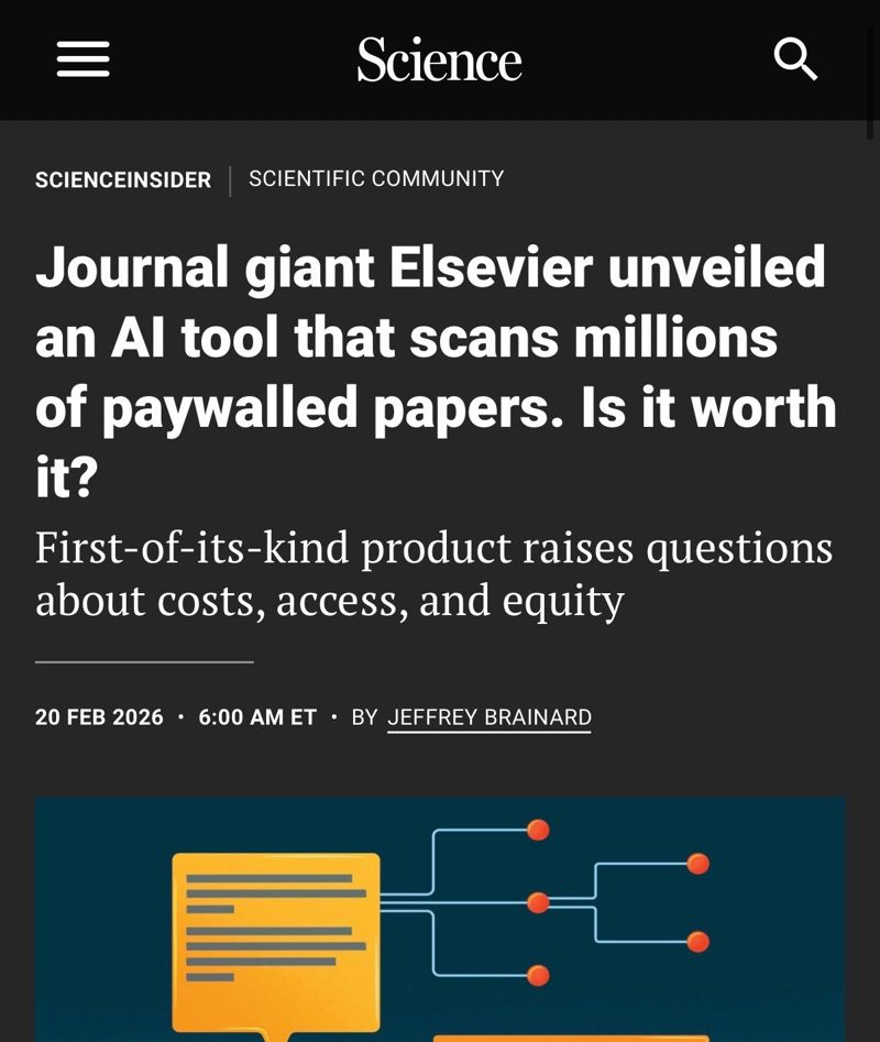Pretty proud moment for me. It’s a fair and balanced review all in all. Good is places I’m happy about and work needed in others. Overall really excited it seems to resonate overall. https://www.science.org/content/article/journal-giant-elsevier-unveiled-ai-tool-scans-millions-paywalled-papers-it-worth-it
